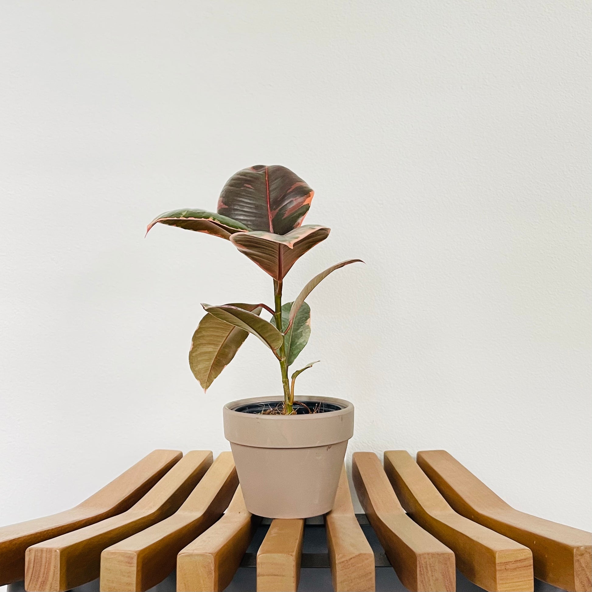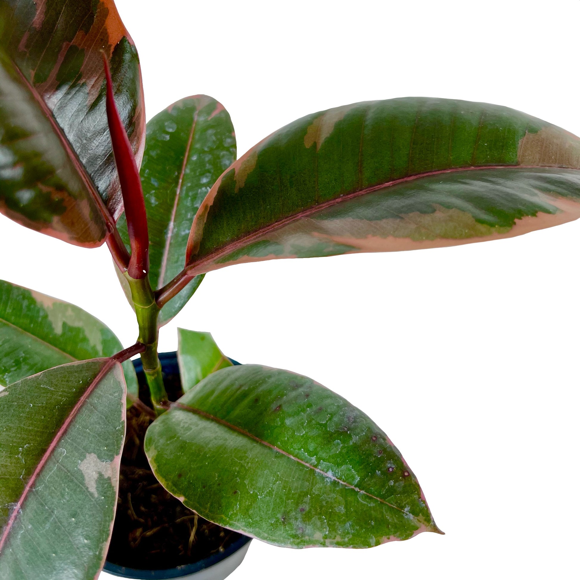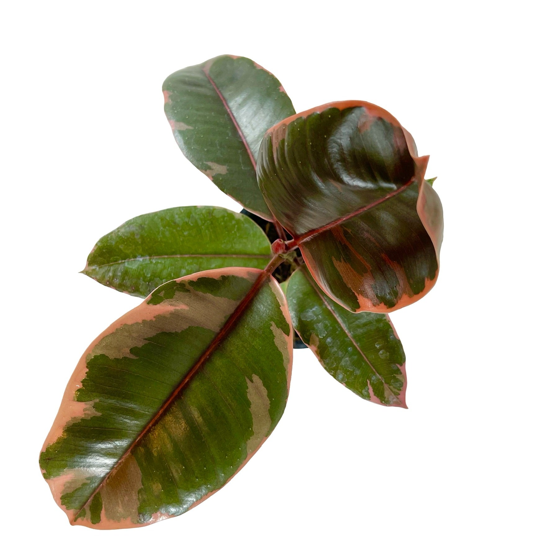 This houseplant is very trendy due to the bright and unique coloration of it’s leaves. The Ficus Ruby’s leaves are thick and glossy, with variegation of pretty pink and green colors.