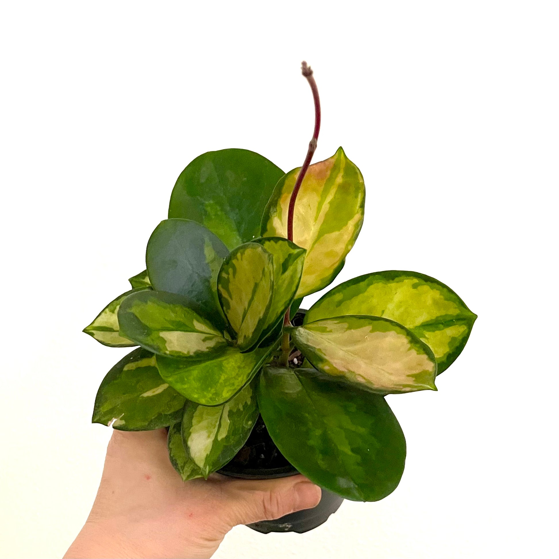 The Hoya Australis Lisa is a variegated form of Australis. It has glossy, round, waxy leaves that are fun to touch. This Wax Plant is a fast grower, and is an easy-care houseplant fit for any light-filled room!