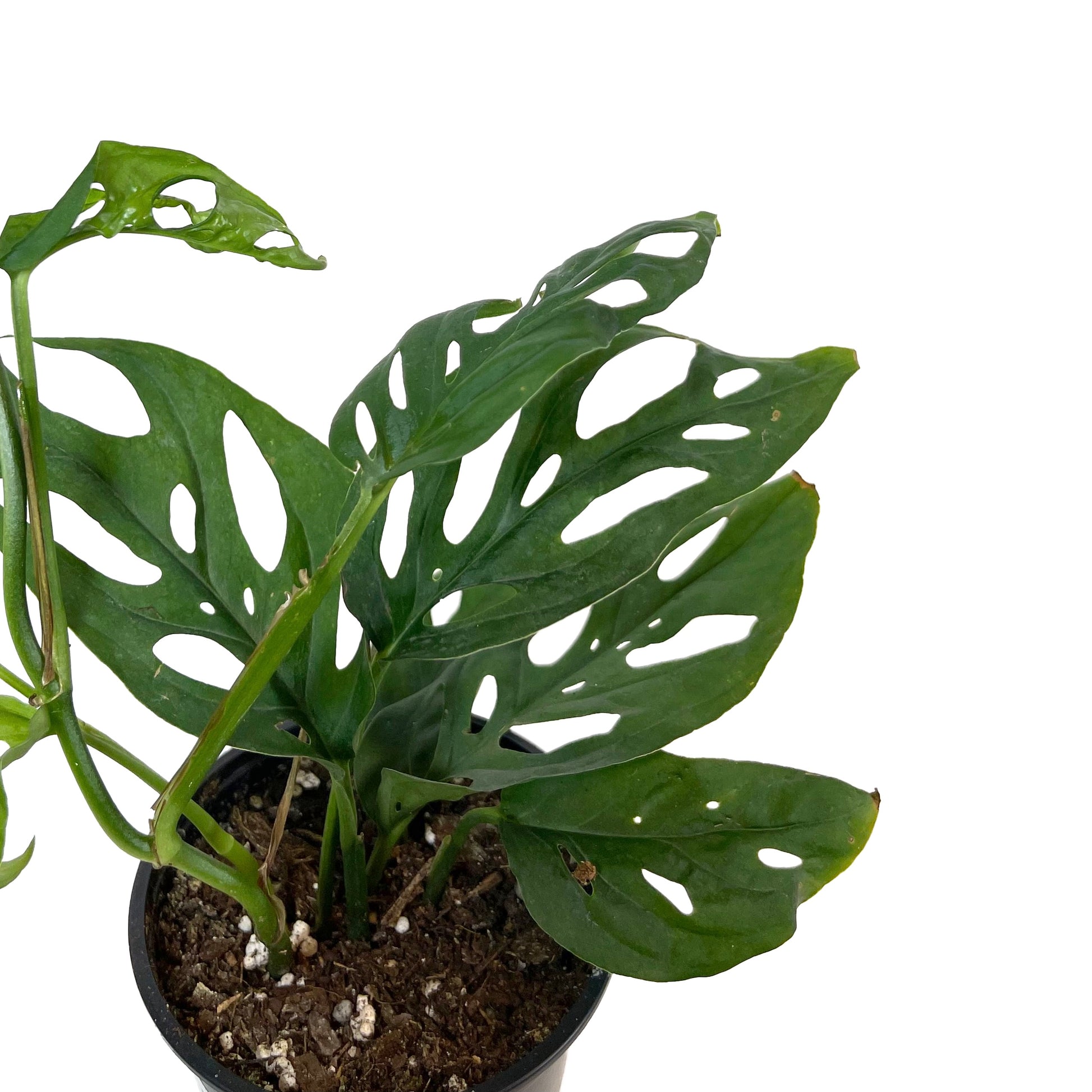 Monstera Adansonii, also known as the Swiss Cheese Vine, is an easy-to-grow houseplant with show-stopper foliage. Each leaf is full of natural oval-shaped holes called fenestration that earn the plant its nickname. Swiss Cheese Vine loves to climb on a moss pole or hang over the pot without support.
