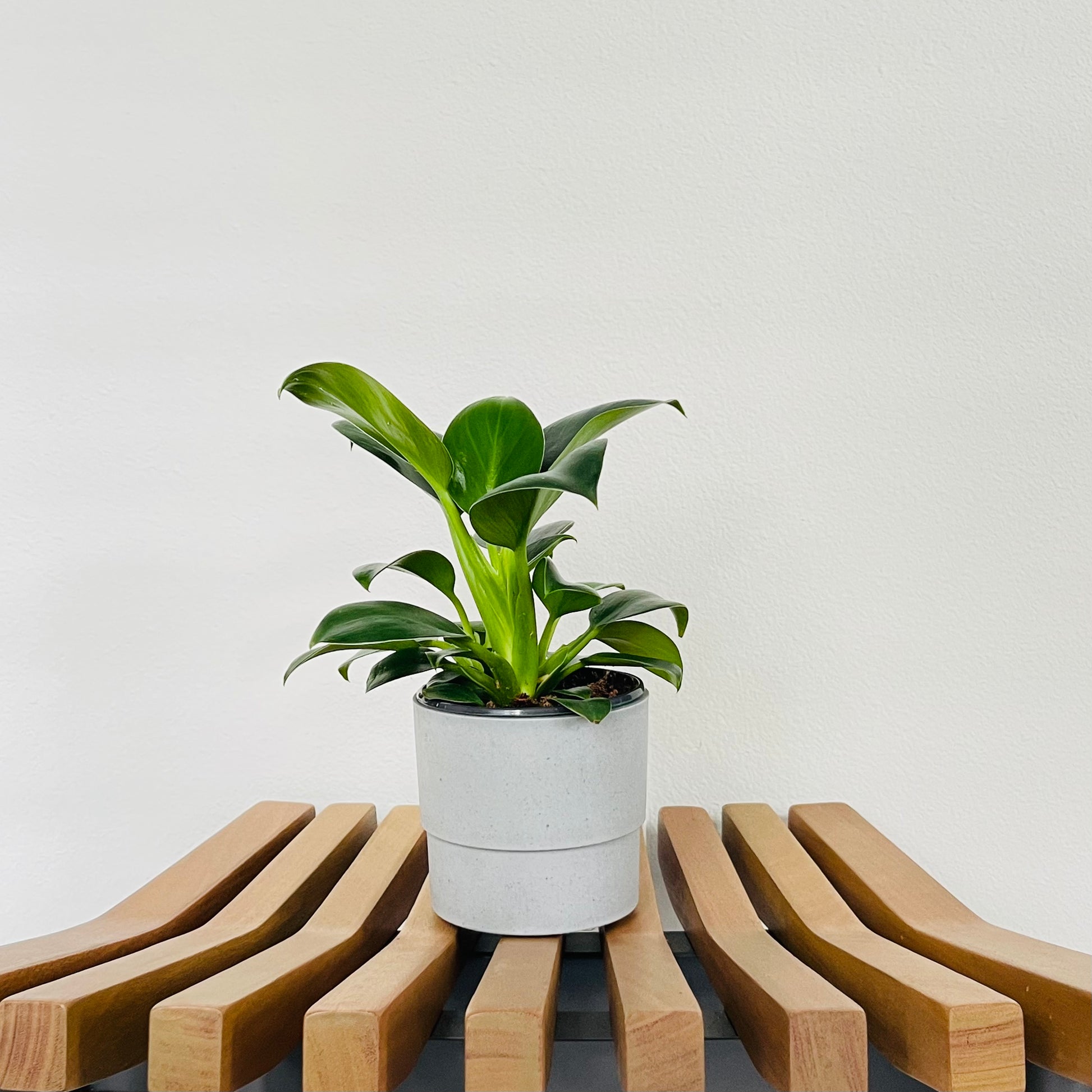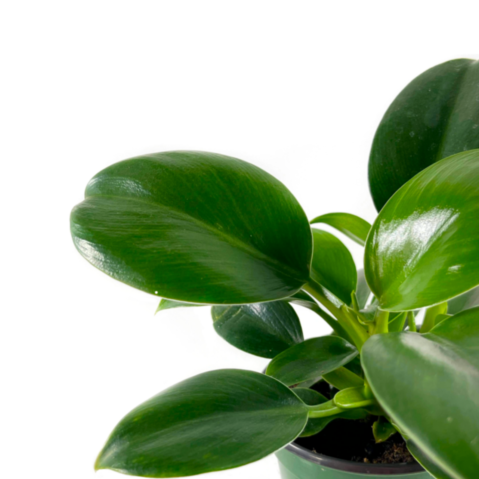 The Philodendron Green Princess is striking and understated. Its dark-green glossy oval leaves are detailed with subtle lines across the face.