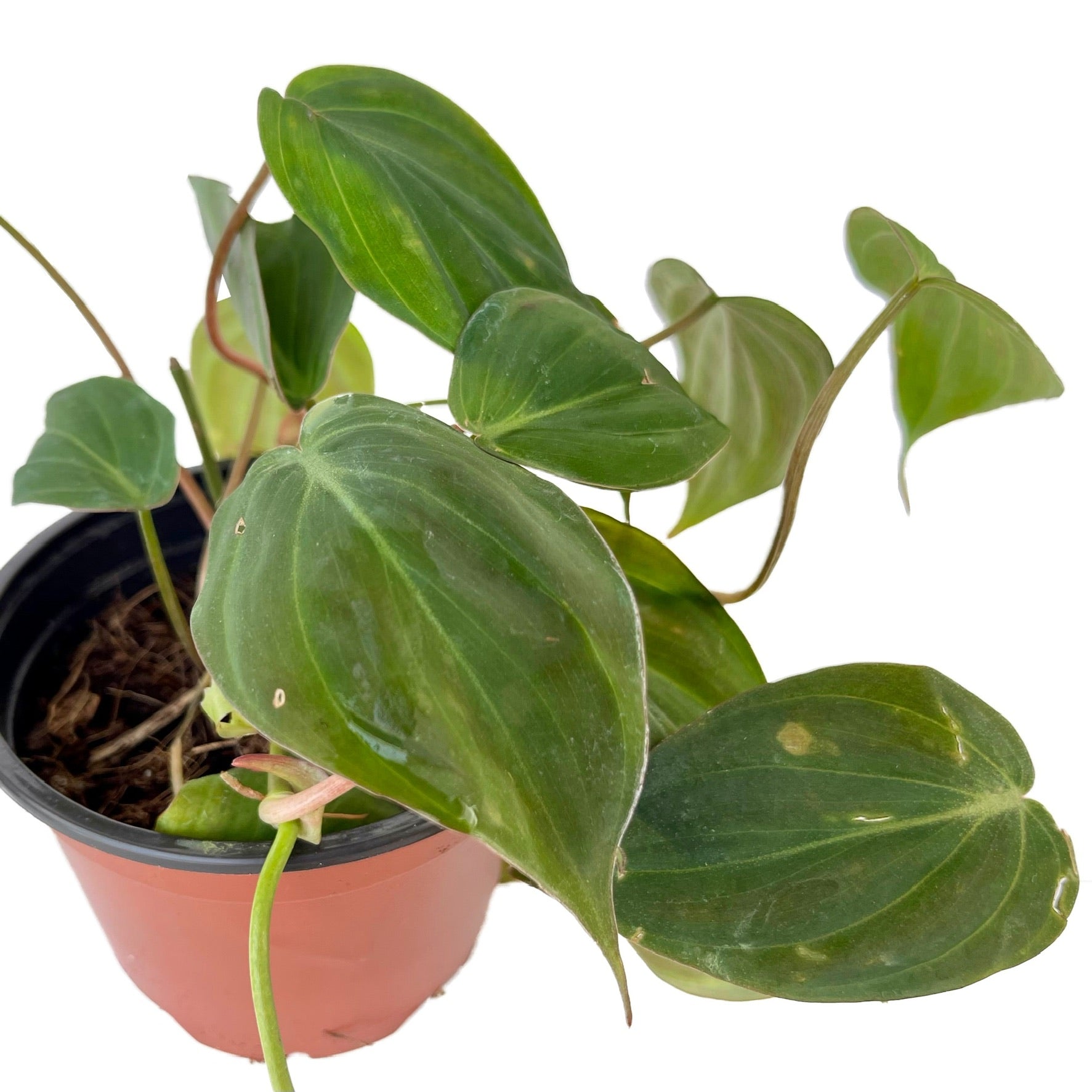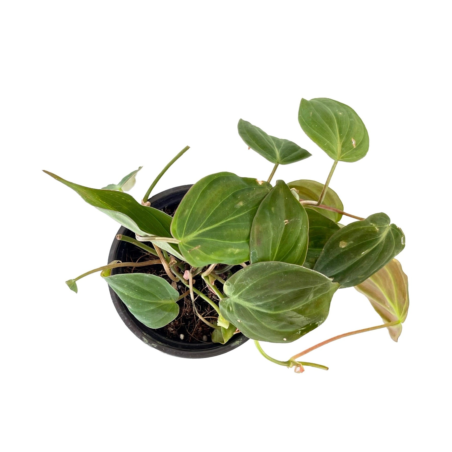 Philodendron Micans look a lot like the typical heart-leaf philodendron you might be used to seeing. What sets the philodendron micans apart from the traditional heart-leaf philodendron is its beautiful velvet finish. The leaves have a greenish-purplish finish with a bit of a shimmer.