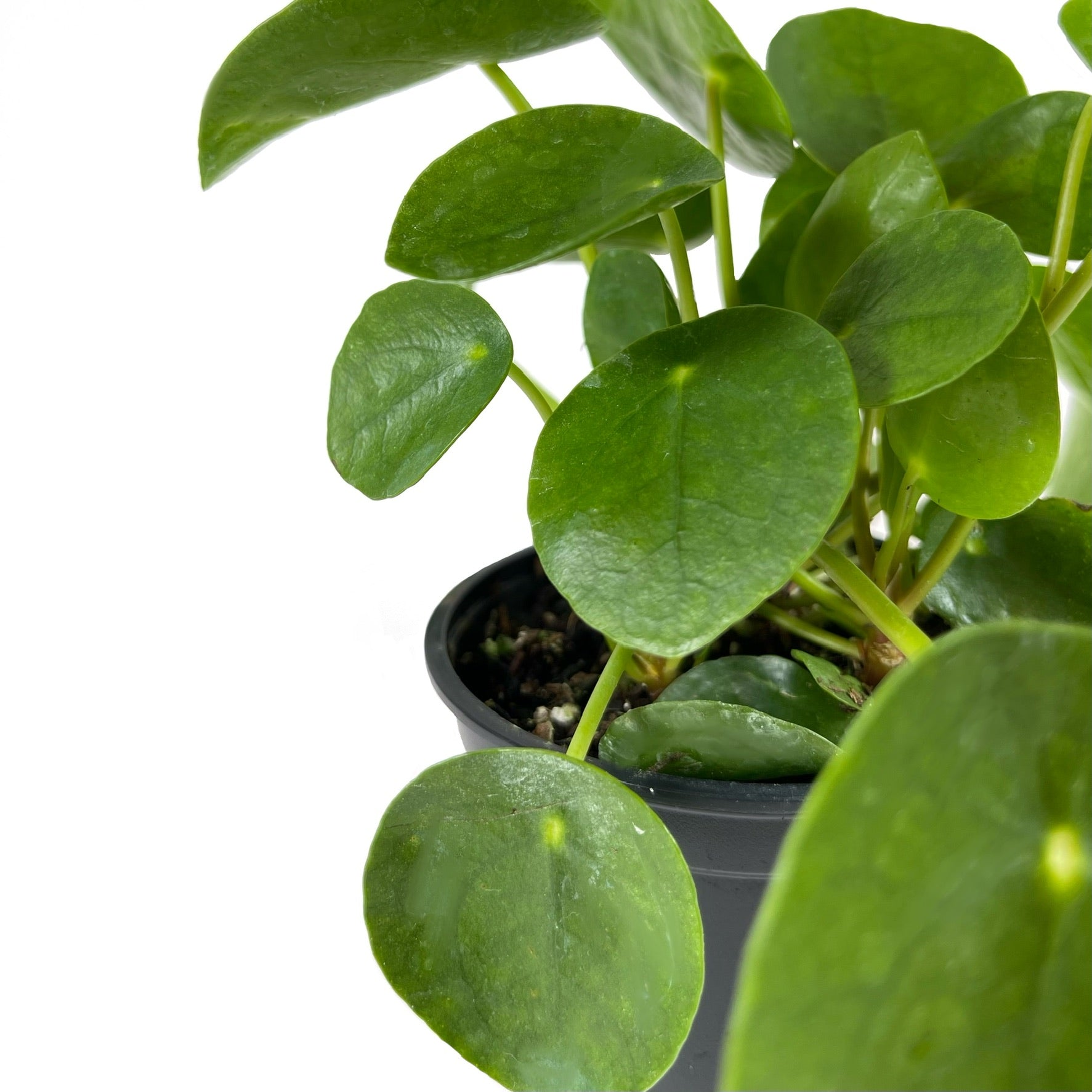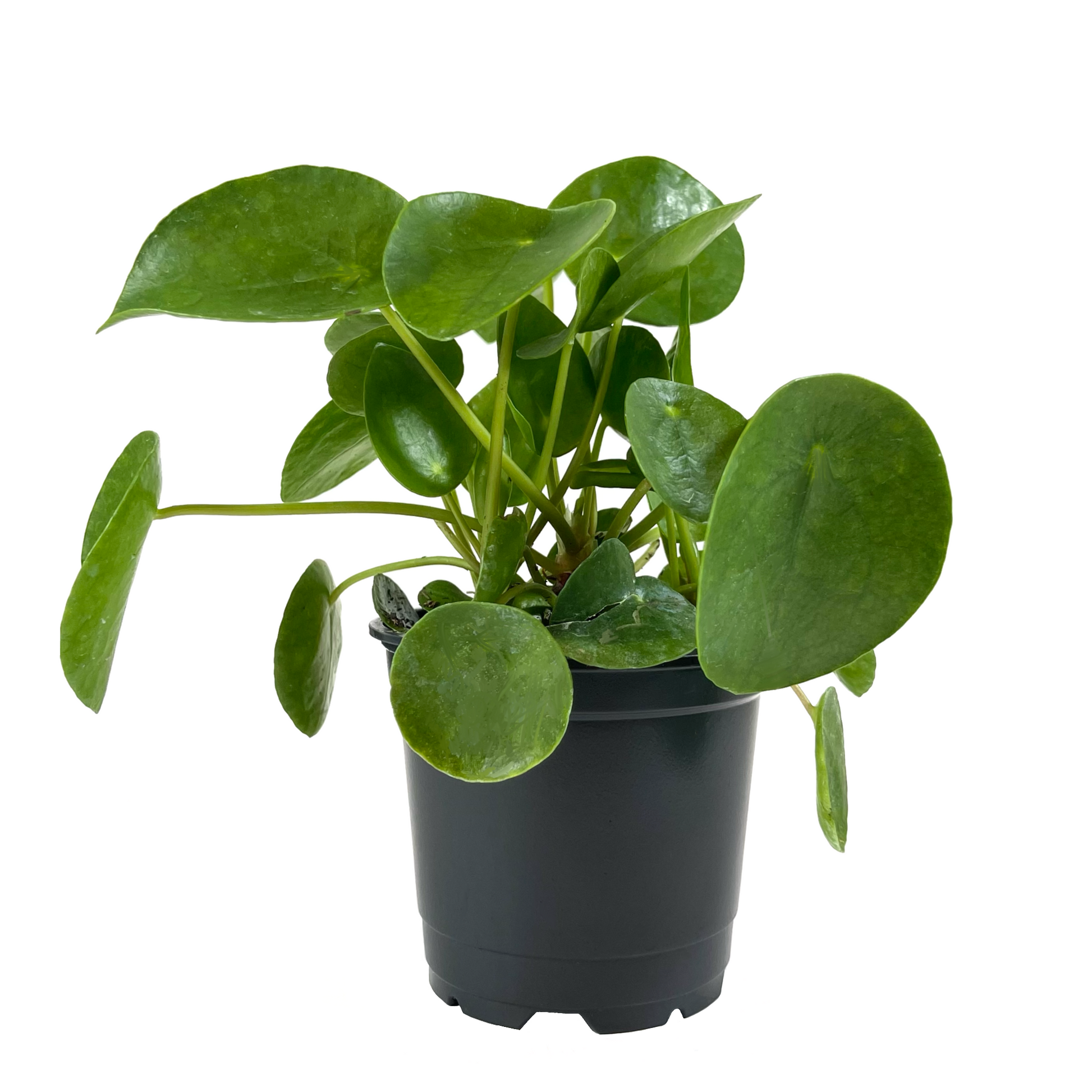 This plant is commonly known as a money plant or friendship plant. The Pilea plant is easy to propagate and share, hence the name. They are hardy, unique and grows in a quirky sort of way. For more even growth you can rotate the plant once or twice a week a quarter turn.