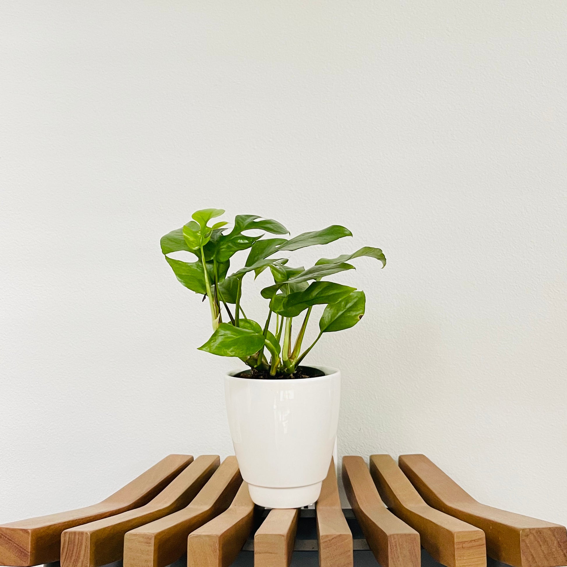Commonly called the Mini Monstera because it resembles a miniature version of the Monstera deliciosa. The Rhaphidophora tetrasperma’s uniquely shaped green leaves will quickly and easily flourish given the right conditions. Use a trellis, totem, or moss pole to support the vines and add height.