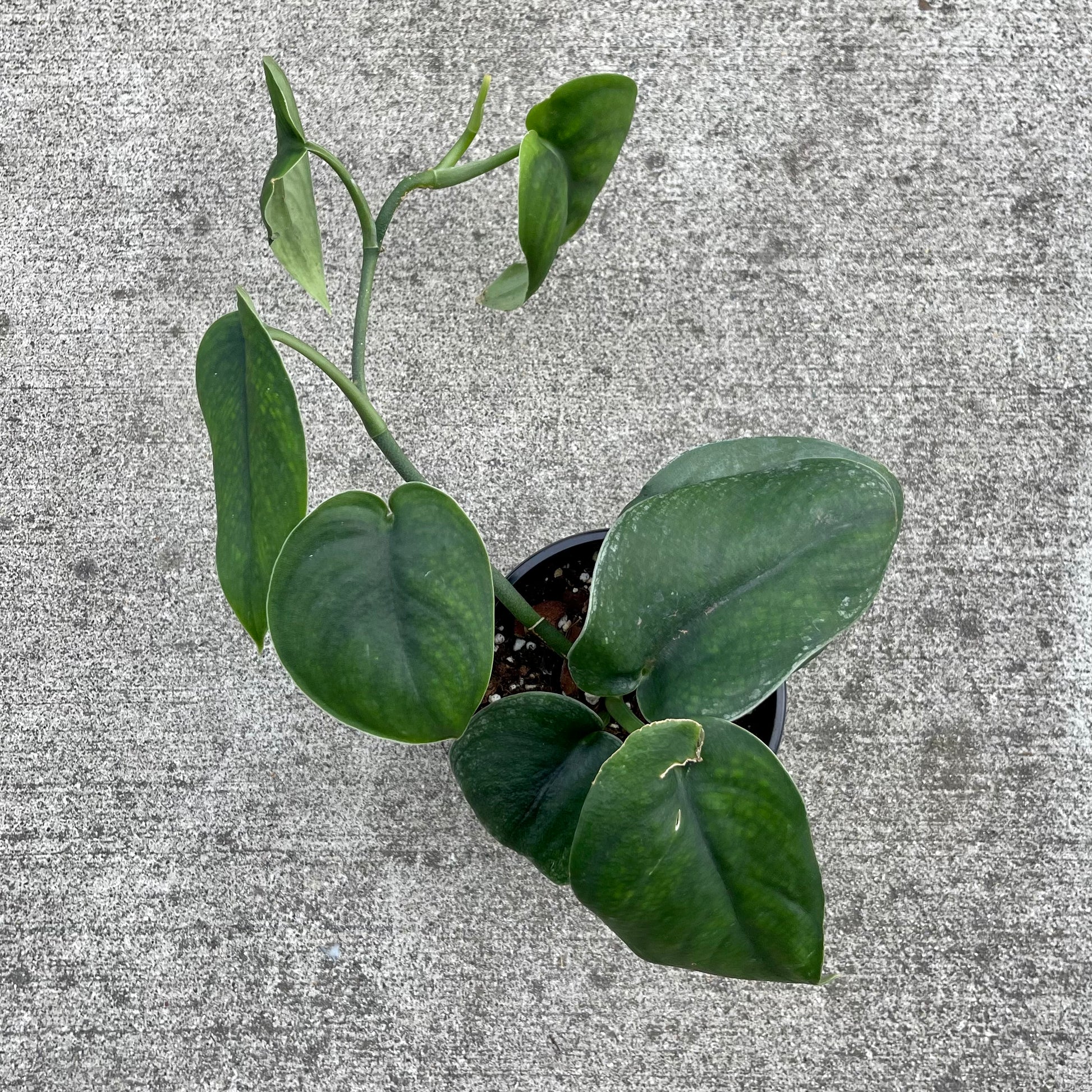 Scindapsus Jade Satin is a variety with rich dark "jade" green coloring with typical markings undertones but no silver. These are quite slow growing. In higher light exposure, you'll see more splash markings.