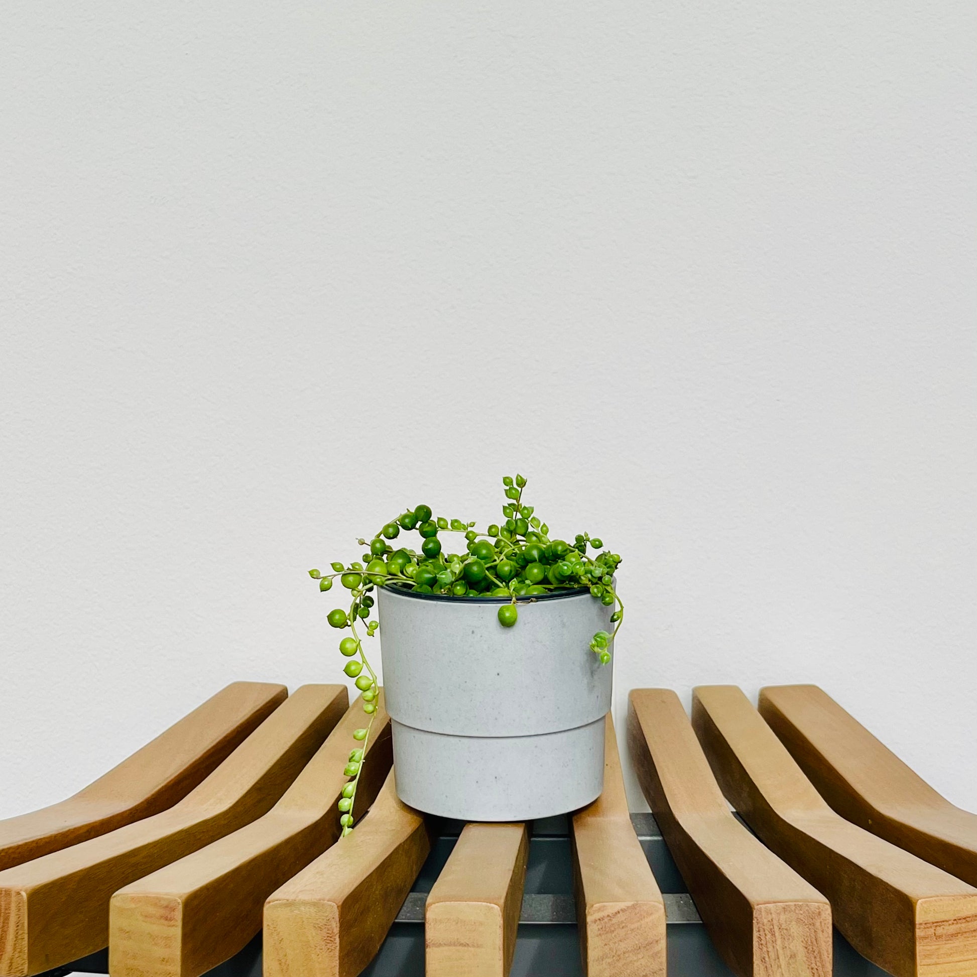 The string of pearls is a popular choice for succulents. The strands grow long and makes a pretty trail. You can keep it on a shelf or hanger for a beaded curtain effect.